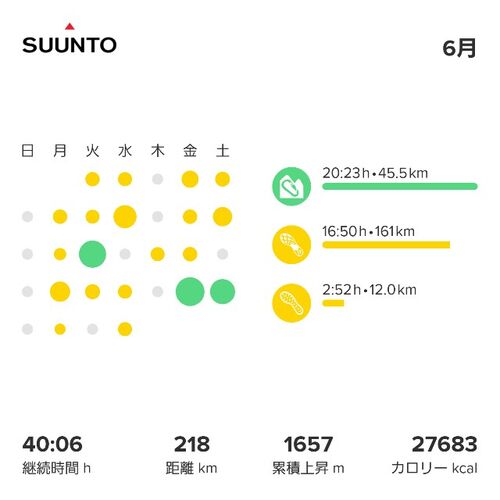 6月のトレーニングレポートです。 6月は20回トレーニングしたんですが、うち3回は登山でした。 そして1回トレランていうか低山ハイク(光城山4往復)なので、ランニングは16回でしたね。 月間走行距離は218キロ、ランニングでは160キロほどでした。登山2回行…